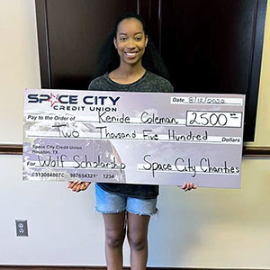 recipient of a $2,500 Space City Charities Scholarship.